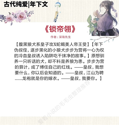 小短评:年下伪叔侄 ,腹黑犬系皇子攻和心机美人废帝皇叔受,小狼狗一步步将皇叔吞掉的故事。受原是皇帝,但被他的兄弟抢了帝位,被迫吃毒药,身体赢弱不堪,但是却更美艳动人。他的四哥,侄子都迷恋他,后面也有一些炮灰,所以攻总是在吃醋。受只想要江山,工于心计,无情无义。受开始是利用攻的,后来才爱上他,所以是先虐攻后虐受。受原本调教出一个忠犬出来助他,忠犬攻聪颖机智,但是谁知道忠犬在求而不得以及看到他和其他人虚与委蛇时各种姿态,黑化了。受原想驯养一只听话的犬,却不料是养狼为患。步步为营的算计,成了缚住自己的红线。过程有甜有虐,结局he~