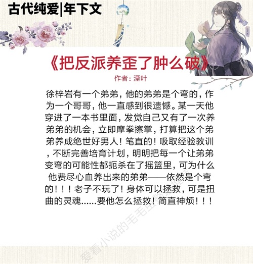 小短评:病娇腹黑弟弟攻 X 温润人妻哥哥受。伪兄弟年下。受有天被亲弟弟告知他弟弟只喜欢男人之后,严重怀疑一定是自己对弟弟疏于照顾。于是当他莫名其妙穿到书中并得知自己有个乖巧可爱的弟弟之后,就立志把弟弟养直,细心呵护。结果没想到,弟弟是个重生的,他的那些掰直一点没用,弟弟依旧坚定不移地弯了,而且将哥哥扑倒了〜这文一点都不虐,就是个手拿金手指的穿越人士各种抢本书原来主角——伪白莲花受的各种宝物,最终打倒原著受并且飞升成仙的故事〜文里有几只蠢萌的宠物,挺欢脱的,为这文添了好多欢乐〜