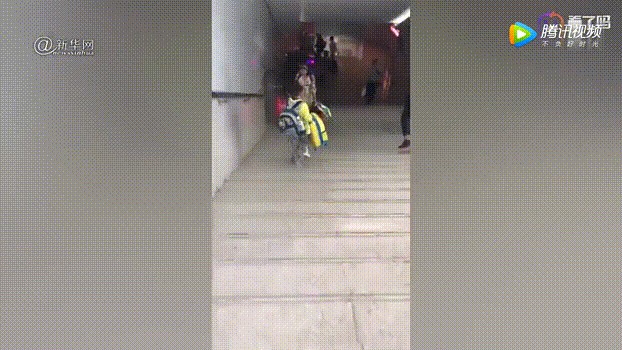 不仅拿着自己的小箱子,还要帮妈妈拉大箱子。