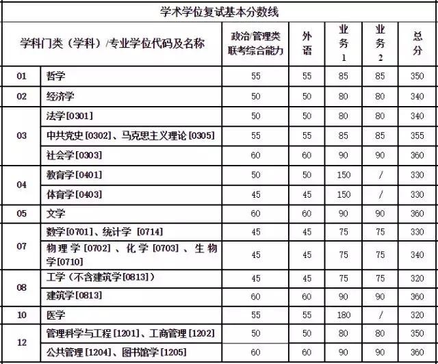 复试基本分数线为相应学科门类(学科)/专业学位的最低分数线,单科、总分须同时满足要求。各招生学院可根据其招生名额和生源等情况,按一定的差额复试比例上浮复试分数线并确定复试考生名单。