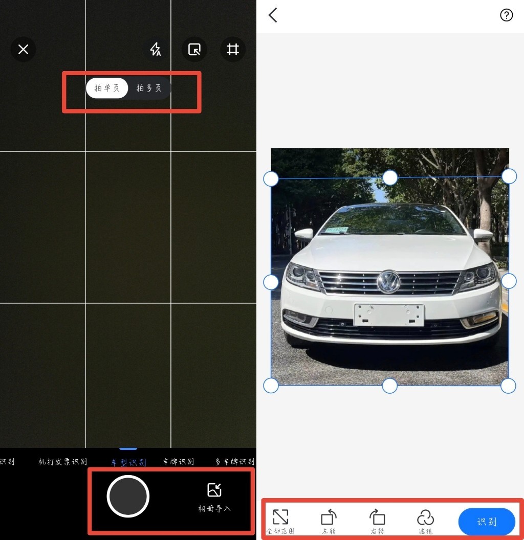 想要识别各种车型,需要用到的就是它的【车型识别】功能,支持直接拍照或从相册导入图片,可单张拍摄或连续拍多张。