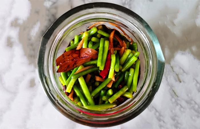 技巧2、熬好的料汁一定要放凉,然后再倒入瓶里。要不然蒜苔的颜色容易发黄,并且口感变软。所以要等料汁放凉以后再倒入,这样颜色就翠绿不发黄,好看又好吃。