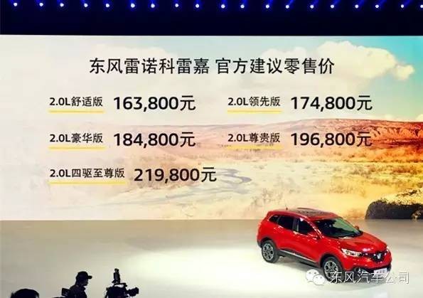 东风雷诺科雷嘉上市,售价16.38万元-21.98万元