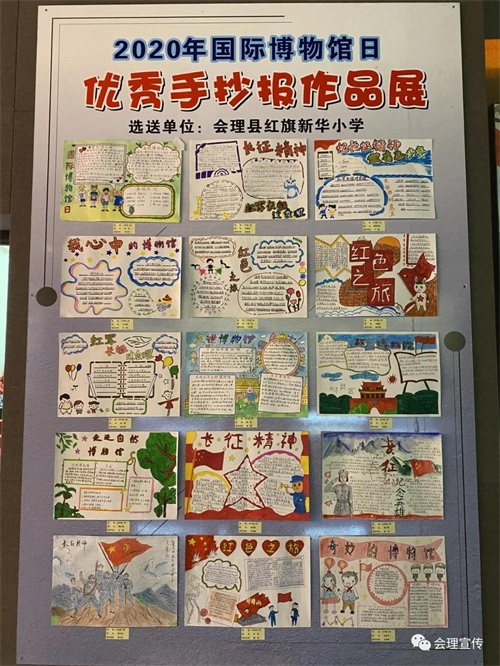 据了解,从4月18日至26日,“2020年国际博物馆日”优秀手抄报征集活动,以“红色之旅——会理县红军长征纪念馆”“5·18国际博物馆日”“我心中的博物馆”“奇妙的博物馆”为主题,由新华小学推荐优秀作品15件,参加《“2020年国际博物馆日”优秀手抄报作品展》,并于5月1日至11月30日在纪念馆一楼展厅展出。孩子们用丰富的色彩、不同的视角呈现了他们眼中的博物馆,展现了家乡的红色文化、历史文化,通过传承红色基因,让长征精神永远绽放光芒。