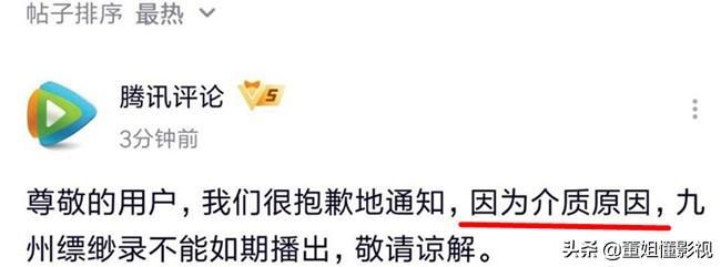 在临播出前的半小时却被腾讯视频紧急宣布下档,对此期待很久、很多刘昊然的粉丝们对此一片“哀嚎”之声。官方给出的原因是:介质原因。