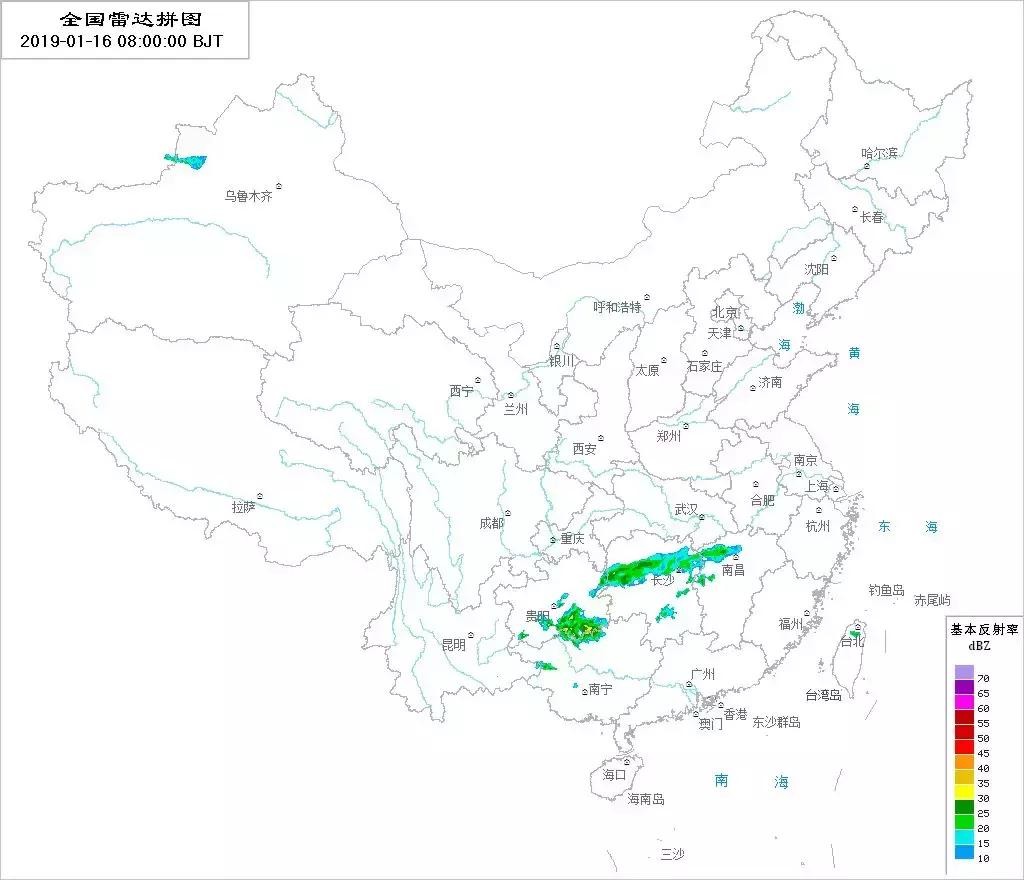 从上图我们可以得知该雷达图显示的是今天早上8点我国的降水基本情况。