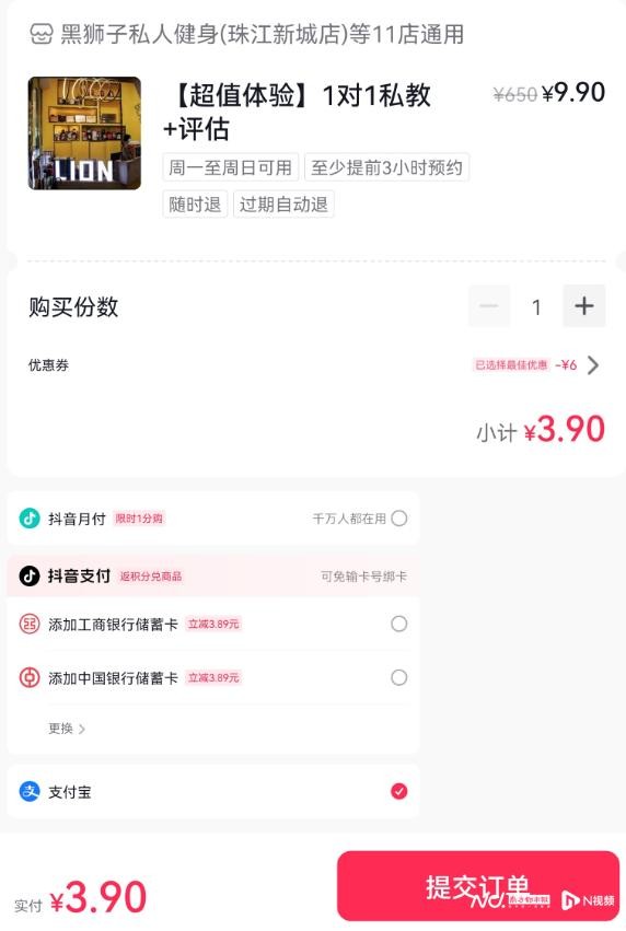 随后记者在抖音平台搜索“黑狮子健身”“黑狮子门店”等关键词,但平台并无显示门店是否有在正常运营。抖音平台还显示,黑狮子还推出多个私教课程,且能正常购买,课程页面显示“广州·黑狮子11店通用”,但这11个门店包括了东圃店、元空间店、富力盈泰店,这三家门店已被证实关店。