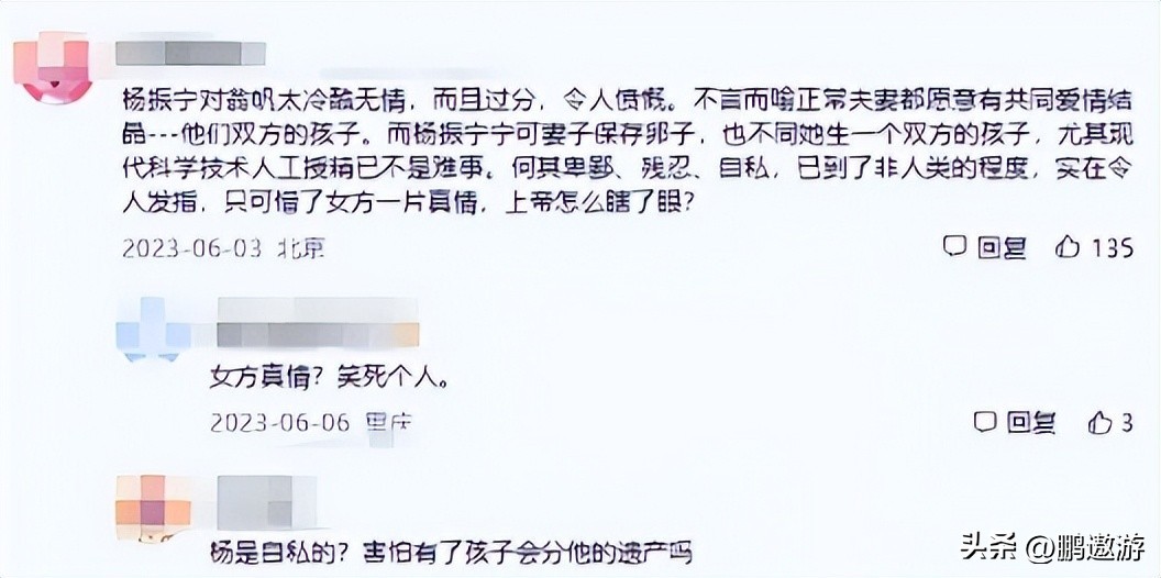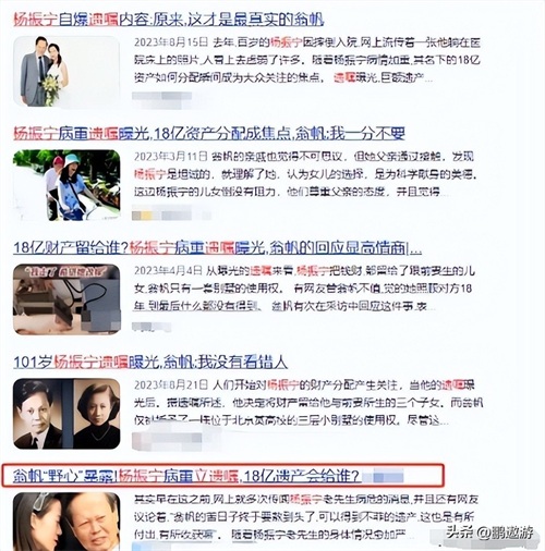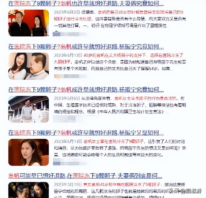 并且还有鼻子有眼的写道,这是翁帆给自己留的退路,等到杨振宁离世,她就可以带着遗产找下家,并且凭借卵子生孩子。