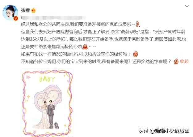 但没多久之后,张檬又开始自爆备孕,并向网友请教。