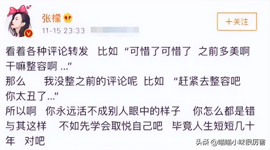 其实除了容貌,张檬在整容期间的一系列操作也让人匪夷所思。