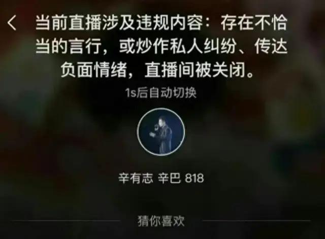 好笑的是,还没等辛巴自己停播,他又因在直播中发表不当言论,导致直播间被封禁。
