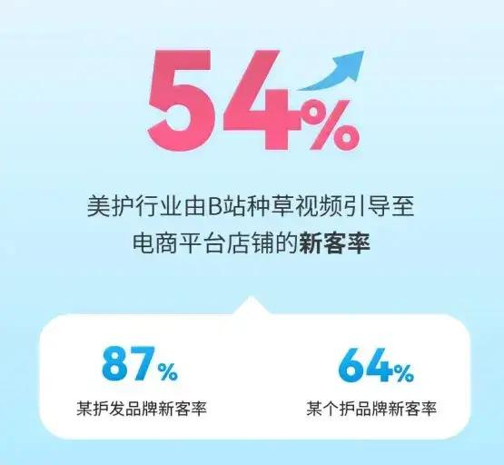 在当前电商市场中,获取新客户的成本逐渐升高,用户增长也开始放缓,形成了所谓的 " 存量时代 "。54% 的新客率意味着,B 站所带来的年轻用户群体无疑为合作电商打开了一个新的 " 蓝海 "。