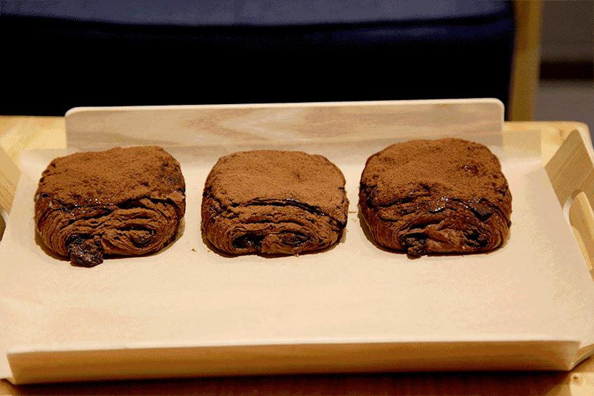 该款面包选用的法芙娜巧克力和法国可可百利,香气很足却不腻。起酥口感酥脆,吃起来柔软不干硬,层中也有巧克力酱夹心。美中不足的是,面包里有几个稍大的气泡影响口感,蜂窝组织不够完美,对于不爱吃甜的我来说也有些过甜了。吃过之后,手和嘴的确变得 " 脏脏的 "。