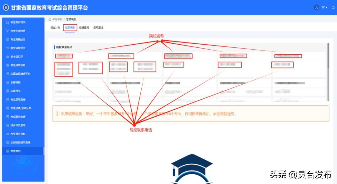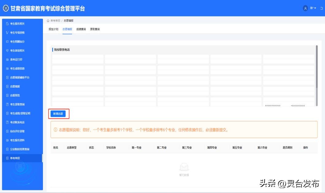 点击志愿填报,在志愿填报页面可以进行院校电话查看。