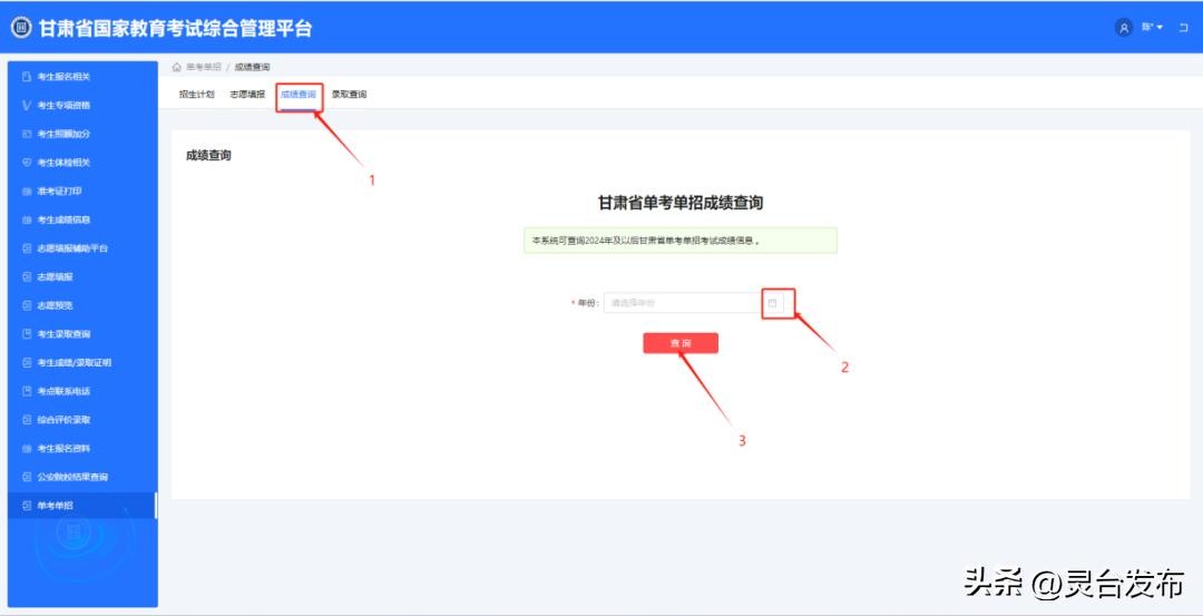 在查询成绩时间段内,点击成绩查询,进行单考单招成绩查询。(此处成绩只支持参加了单考单招高校考试成绩的查询)