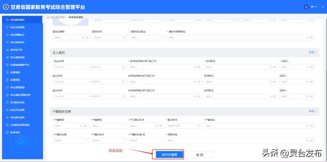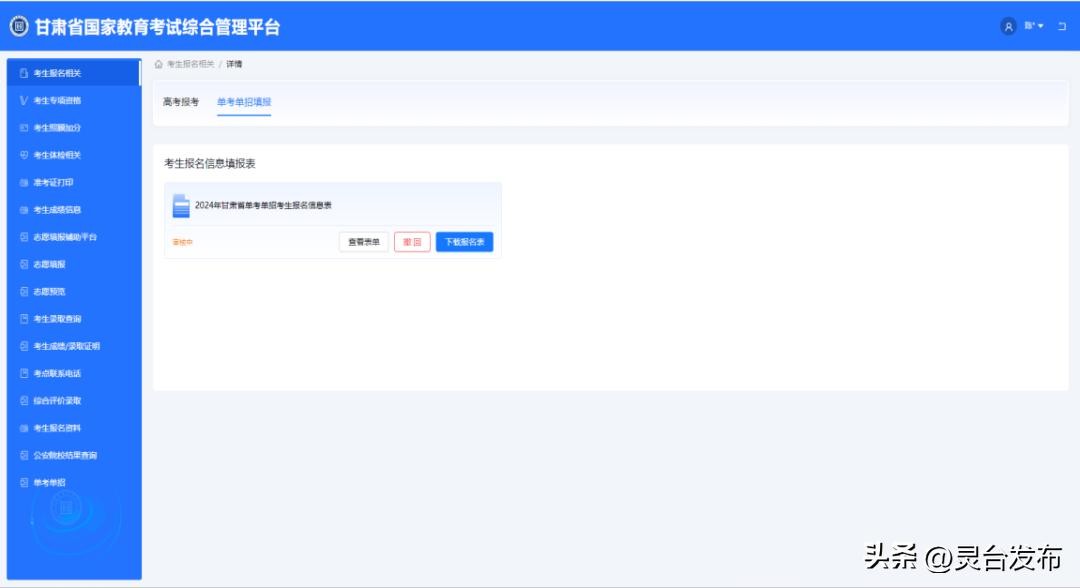 考生报名并提交后,打印《2024年甘肃省高等职业教育分类考试招生单考单招考生报名登记表》一式三份。
