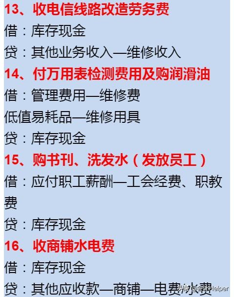 13、收电信线路改造劳务费14、付万用表检测费用及购润滑油15、购书刊、洗发水(发放员工)16、收商铺水电费