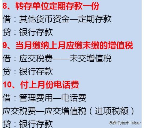 8、转存单位定期存款一份9、当月缴纳上月应缴未缴的增值税10、付上月份电话费