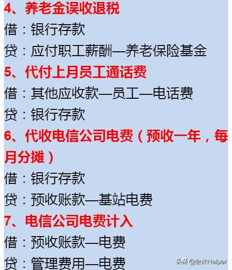 4、养老金误收退税5、代付上月员工通话费6、代收电信公司电费(预收一年,每月分摊)7、电信公司电费计入