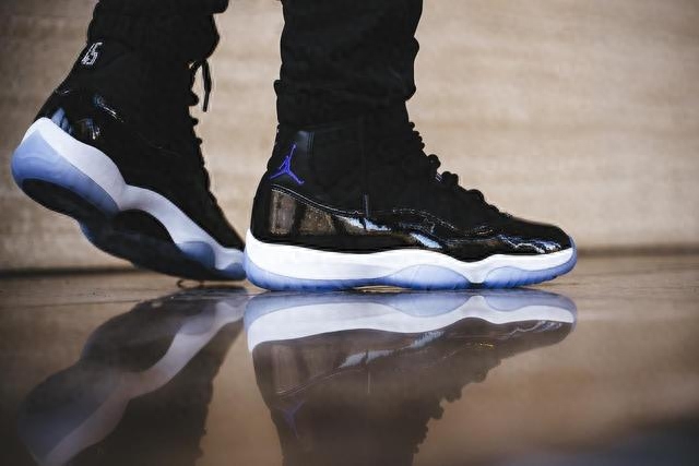 这款Air Jordan 11 “Space Jam”首次亮相 NBA 赛场则是在1995年季后赛对阵魔术队的比赛中。以黑色鞋身搭配白色中底,鞋帮以蓝色 Jumpman Logo 注入。