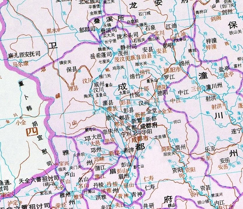 这段历史时期成都又有怎样的特点呢?明朝时期,成都隶属于四川承宣布政使司的成都府、邛州分别管辖。成都在明朝时期的地图上又是怎样的呢?