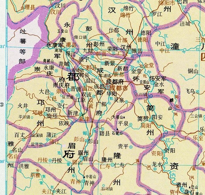 成都隶属于蜀郡、临邛郡分别管辖。成都在隋朝时期的地图上是怎样的呢?这段历史时期成都又有怎样的特点呢?唐朝时期,成都辖区分别归属于剑南道的益州、彭州、蜀州、