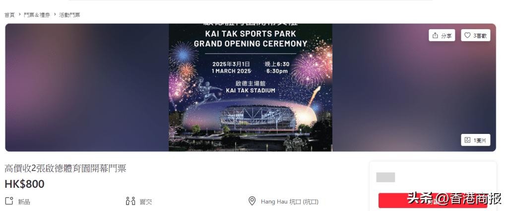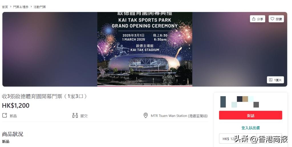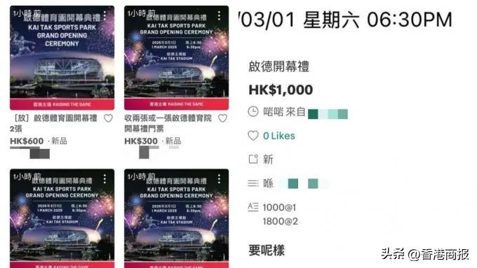 随后,网上交易平台出现“炒卖黄牛飞”的情况,有人以高价贩售启德体育园开幕典礼门票,售价由300元至1000元一张不等,多为两张门票捆绑售卖;亦有网友在平台收票,收价数百元一张。
