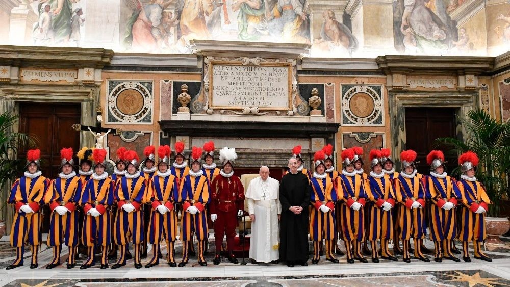 梵蒂冈唯一的武装力量是1506年成立的瑞士卫队,这些卫兵主要负责保护教皇及其住所。他们在自己信仰的驱动下,定期从瑞士志愿者中选拔而来,以忠诚与勇敢闻名。这支历史悠久的小规模精锐部队不仅承担军事保卫任务,也是梵蒂冈荣誉仪仗队的重要象征,每年新兵入伍都进行庄严宣誓仪式。