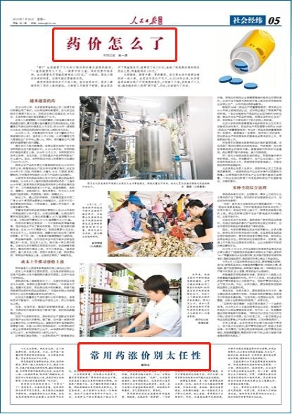 7月29日,人民日报海外版一连发表《药价怎么了》及《常用药涨价别太任性》两篇文章。其内容主要是通过记者的线下采访,问民生,听民声,反映百姓真实的健康获得感。