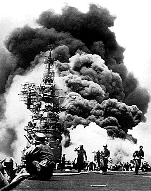 4月5日,日本海军发动“菊水一号”作战,把压箱底的宝贝也拿了出来。世界上最大的战列舰大和号,率领一些驱逐舰和巡洋舰,向冲绳岛方向驶去,希望用其巨炮把美军登陆舰队消灭在海滩。但是这支小舰队很快就被美军发现。4月7日,大和号被美军386架舰载机轮番攻击,中了10条鱼雷和5枚炸弹,最终沉没。3700名海军将士葬身海底,日军在空中和海面上自杀性的特攻作战,并未改变战局,只是白白浪费士兵生命的行为。