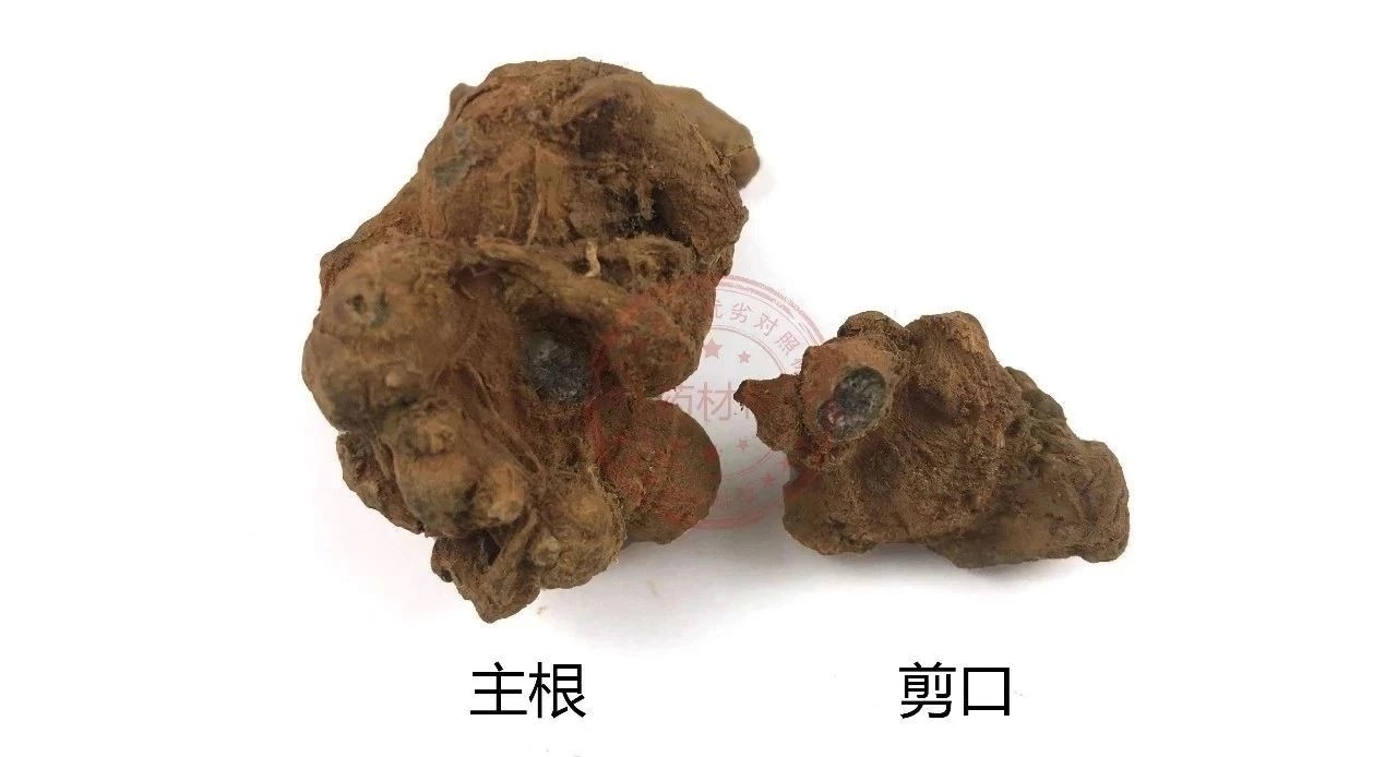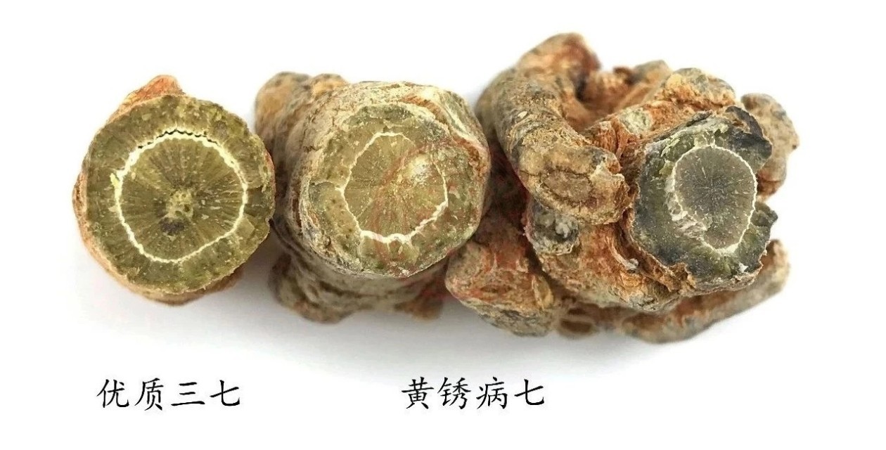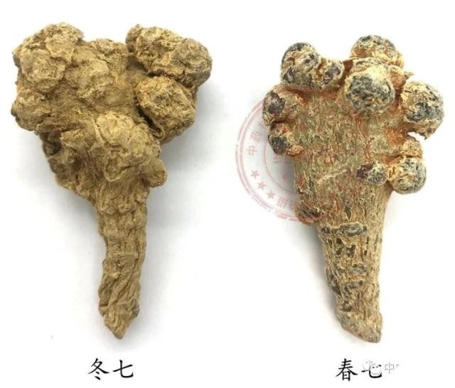 三七为五加科植物三七Panax notoginseng (Burk.) F. H. Chen的干燥根和根茎。秋季花开前采挖,洗净,分开主根、支根及根茎,干燥。支根习称“筋条”,根茎习称“剪口”。