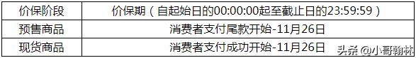 尾款支付:2020年11月11日00:30:00-2020年11月11日 23:59:59