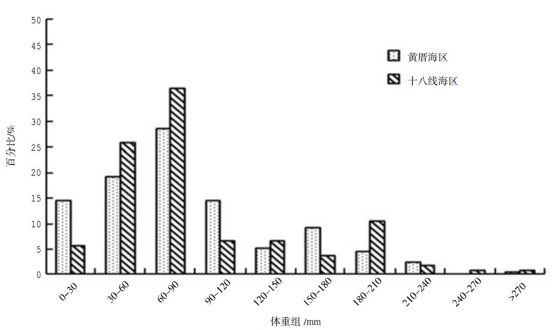 文昌鱼的规格分布(上图单位有误,应为mg)