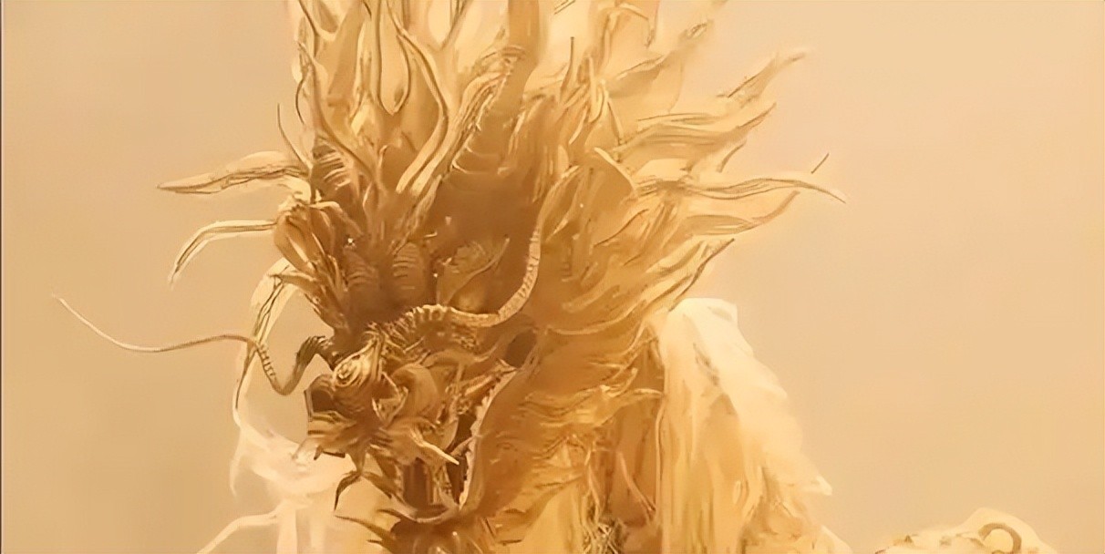 最后是金色的龙出场,在烟雾中上下摆动在搭配着铿锵的鼓点就好像是真龙现身一样。