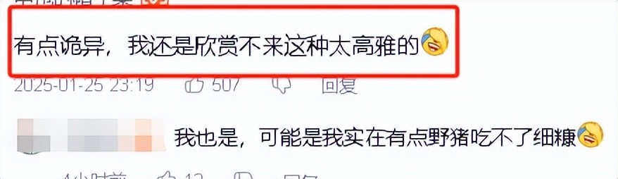 “有点诡异,我还是欣赏不来这种太高雅的。”