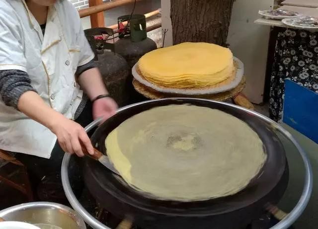 三是泰山煎饼薄如蝉翼,几乎透明。煎饼吃起来略带酸味,香软可口