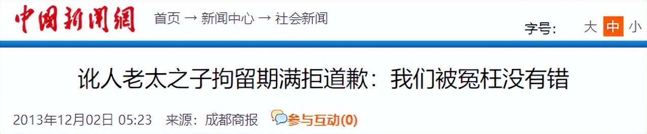 讹人老太之子拘留期满拒道歉:我们被冤枉没有错 来源:中新网-成都商报 2013年12月02日
