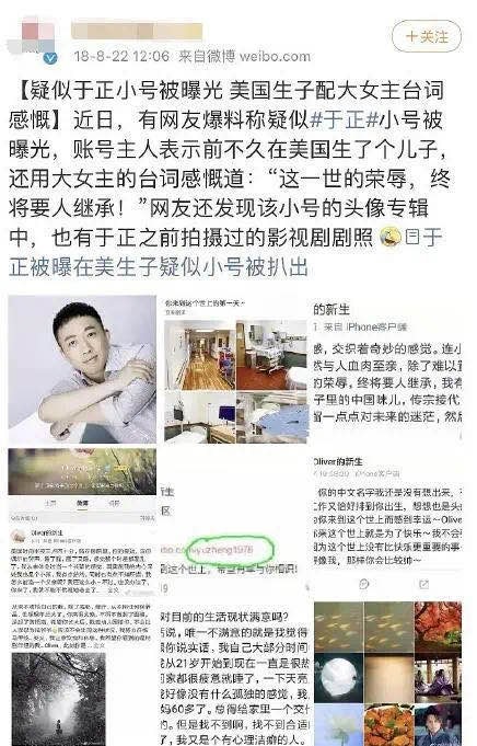 此外,早前疑似于正小号也被网友挖出,其似乎在美国代孕生子,这与他在采访时表示“想当爸爸”、“有心理洁癖,一般女人他接受不了”能够对应上了,虽然于正曾否认过代孕传闻,但网友表示:我不信。