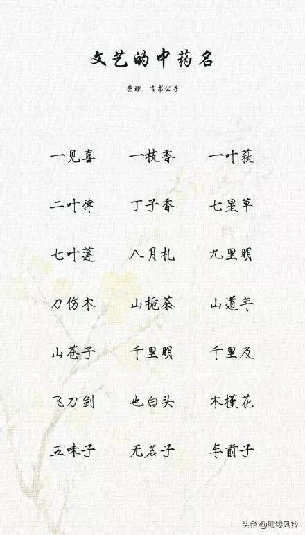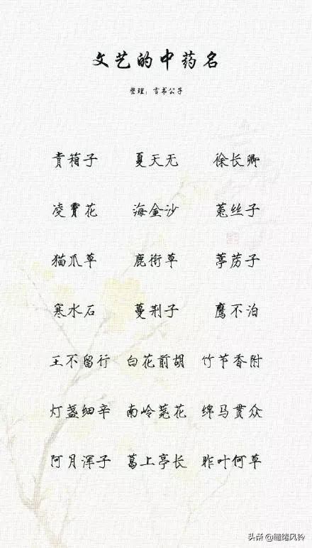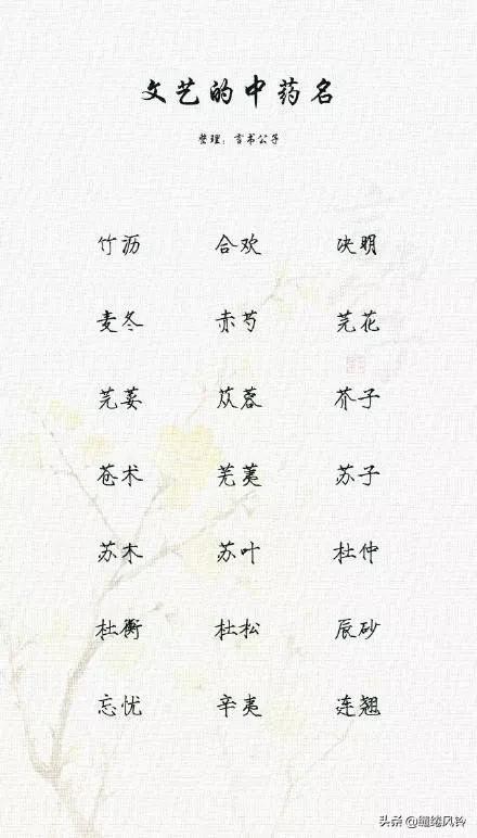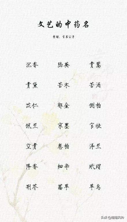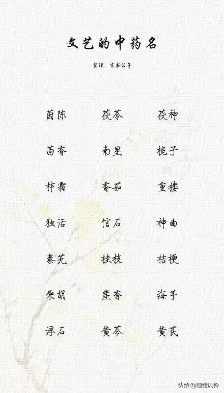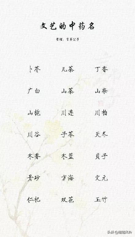 这是一组我认为很有诗意的中药名,光想到长卿、羽涅这样的名字,