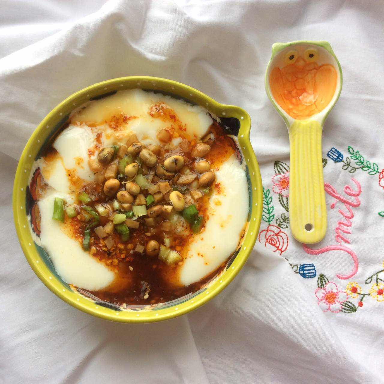 这个是做的甜味的,就是加了白糖的,我小时候特别爱吃甜豆花。以前医院门口有一个挑担子的老头子,我每次打了针,妈妈都要带我去那里吃甜豆花,现在想想,都是满满的幸福感呢
