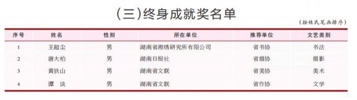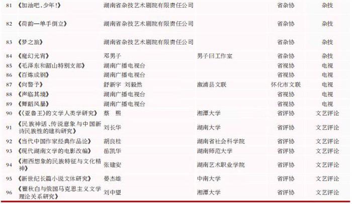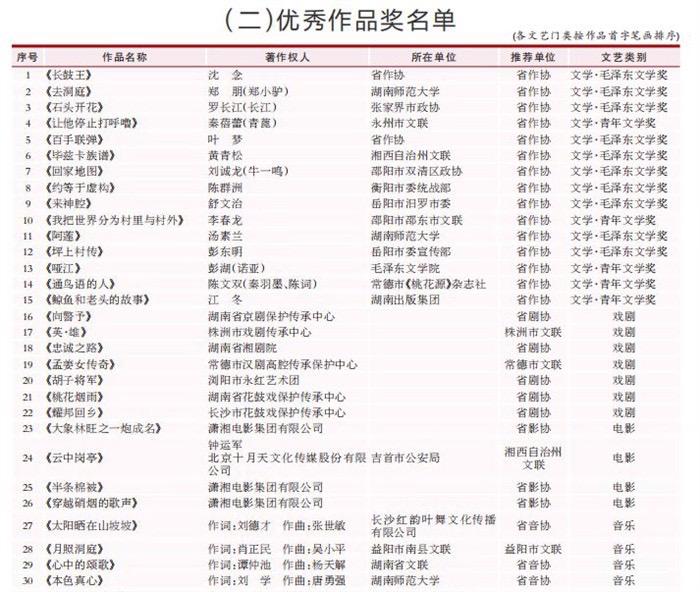 2 月 8 日,湖南省文联召开第十届委员会第四次全体会议,中共湖南省委宣传部、湖南省人力资源和社会保障厅、湖南省文学艺术界联合会决定,对《大地颂歌》等 98 件获得第二届湖南省文学艺术奖优秀作品特别奖和优秀作品奖的作品,王超尘等 4 名获得第二届湖南省文学艺术奖终身成就奖和皮翠娥等 6 名获得第二届湖南省文学艺术奖优秀文艺家奖的个人予以表彰。