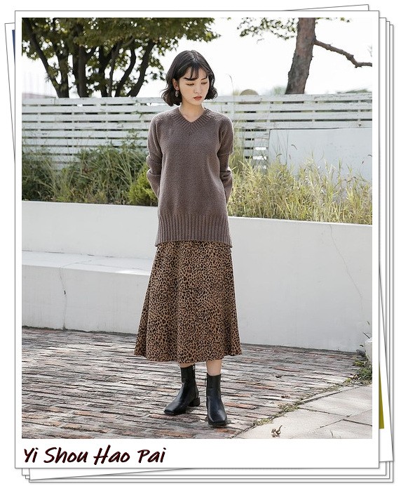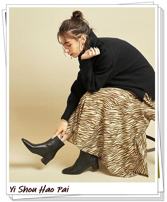 经常走路时,建议使用低跟的方头靴,非常舒适稳固,同时也显得轻熟。搭配豹纹半身裙和针织衫,简单休闲又优雅时尚。
