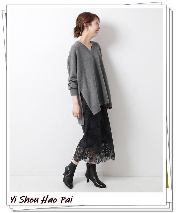墨绿色短靴穿上就能带来沉稳的秋冬感。通过在蕾丝半身裙下面搭配时尚的靴子,可以抑制它的甜美感。