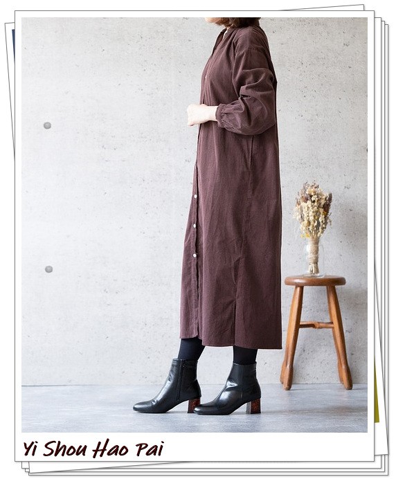 结合了简单设计和透明棕色粗跟的短靴肯定会吸引你的眼球。搭配一条棕色的衬衫连衣裙和黑色打底裤,简单而高级。