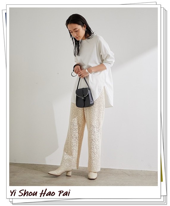 灰白色短靴与白色的优雅蕾丝裤完美搭配。对于全白的造型,你可以穿白色靴子,选择黑色的包包也可以显得不错。