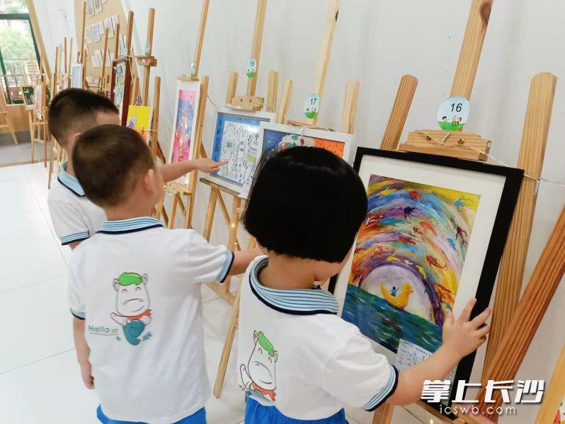 此次“艺术展”活动分为创意绘画、亲子创意手工、环保时装秀三个项目,有幼儿参与、师生共同参与、家园协同参与等多种形式,让孩子们都有展示机会。在创意绘画展示区和亲子创意手工作品展示区,一件件充满纯真和丰富想象力的绘画、手工作品,令观众们流连忘返。“我喜欢这幅画,好好看。”“我觉得这个作品最有趣。”中瀚幼儿园的孩子们也纷纷前来参观,对这些作品兴趣满满。