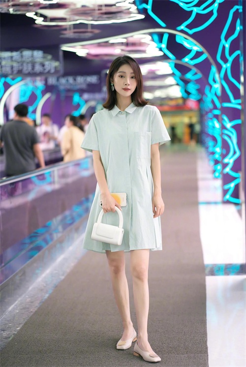 “薄荷绿”自带一种清凉感,非常适合夏天,无论是:衬衫、T恤还是连衣裙等单品,都是非常不错的选择。