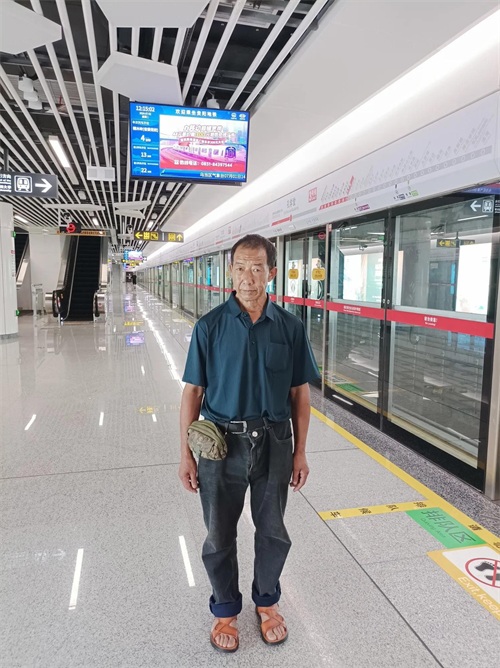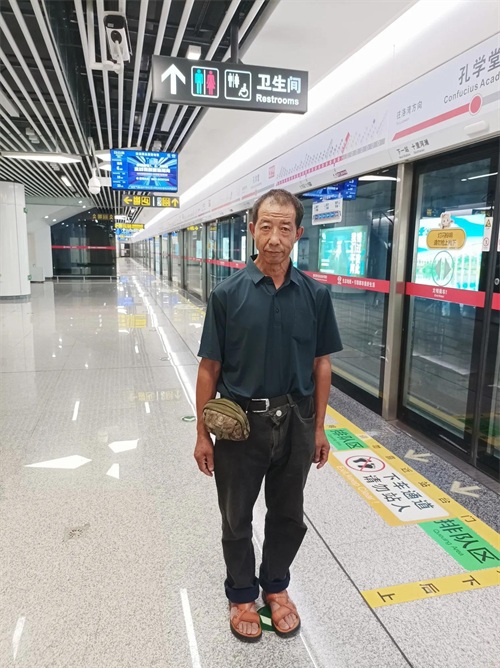 在他不断的催促下,我哥俩从花溪原贵州民族大学(老校区)的小吃街出发了。贵阳地铁3号线就在民大图书馆前,现在花溪区进出贵阳较以前(2023年12月)大大方便多了。在地铁3号线孔学堂站D进出口,大哥留下了他今天花溪游的第一份纪念。