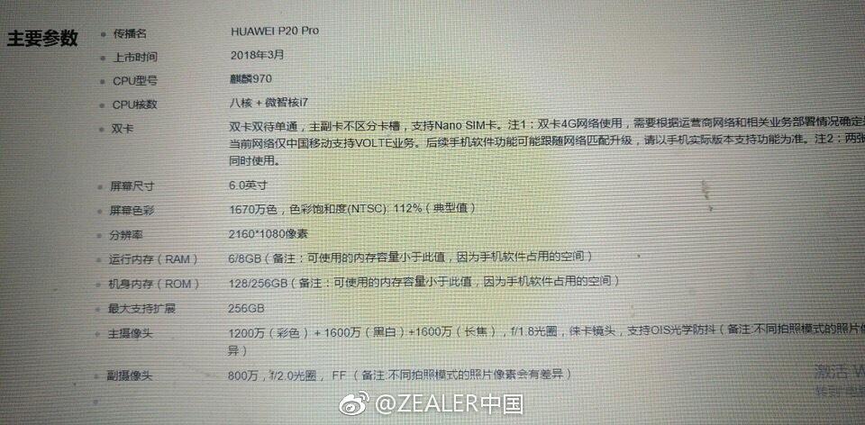全面曝光!华为P20 Pro详细规格流出,徕卡三摄确认!