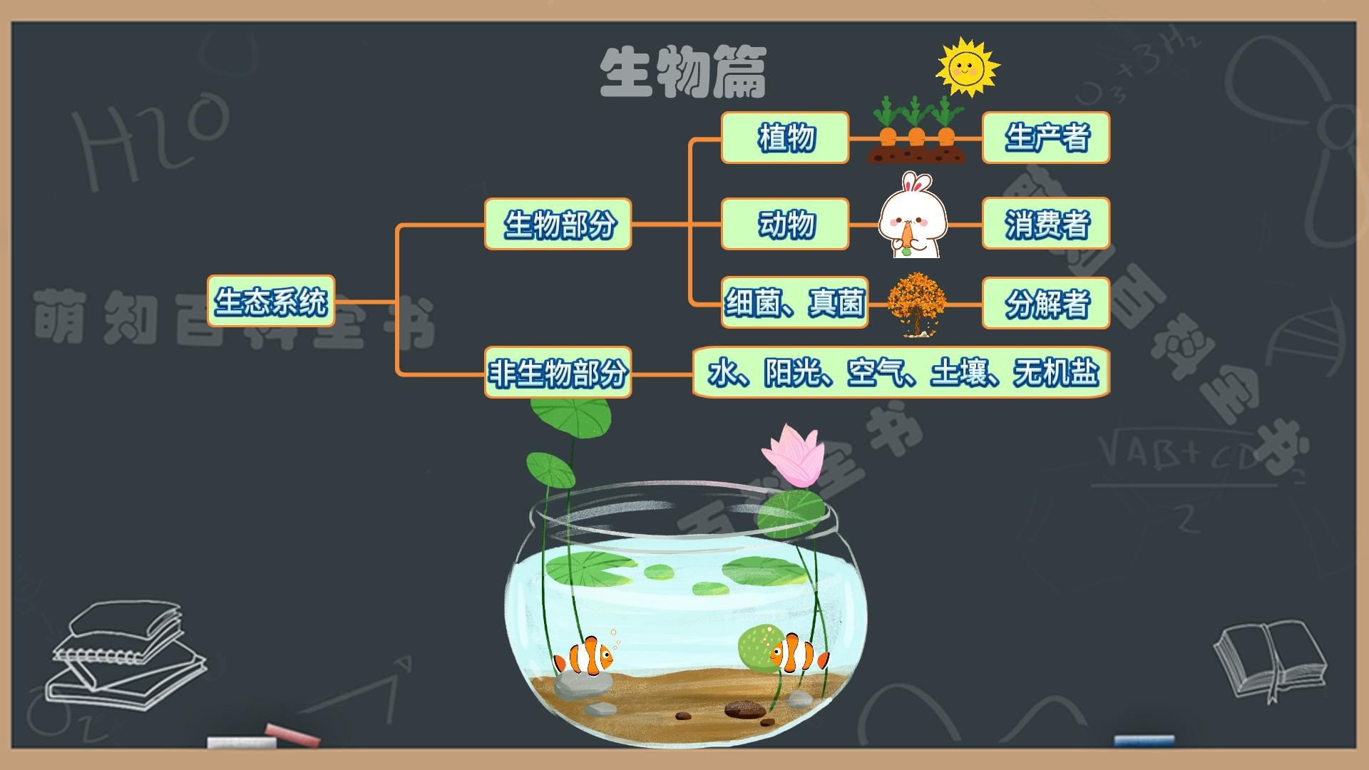 生态系统是指在一定空间范围内生物及其生存环境所组成的统一整体。它主要包括生物部分和非生物部分。生物部分主要由植物、动物、细菌和真菌组成。非生物部分则主要有水、阳光、空气、土壤、无机盐等等。